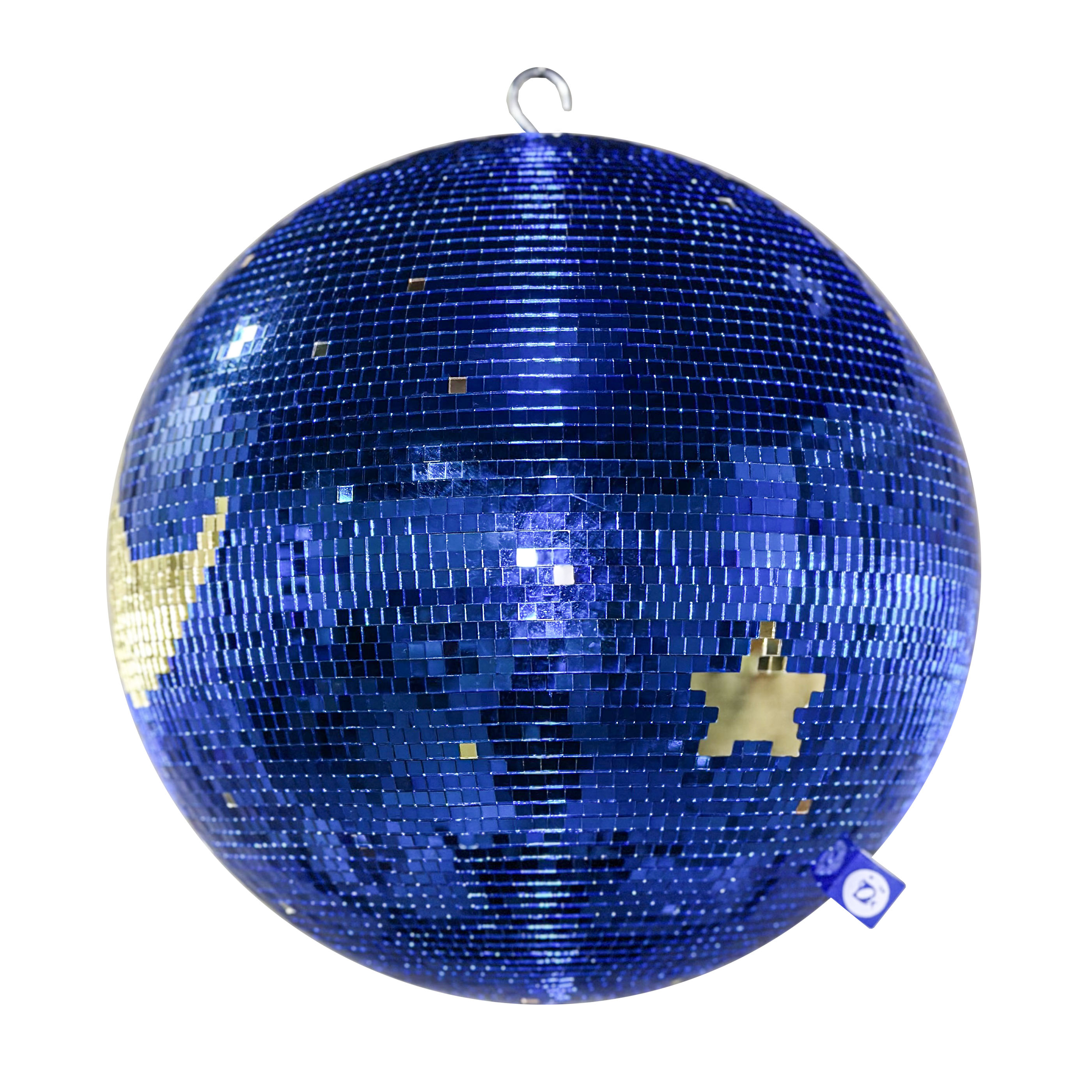 STARRY NIGHT DISCO BALL to hołd dla magii nocy, która nigdy się nie kończy. Ręcznie wykonana, niebieska kula pokryta mozaiką lustrzaną o drobnych płytkach 0,5 × 0,5 cm, ozdobiona złotym księżycem, gwiazdami i migoczącymi punktami w odcieniach rose gold, złota i srebra. Jej powierzchnia odbija światło w setkach małych refleksów, tworząc efekt nocnego nieba tańczącego w rytmie disco.